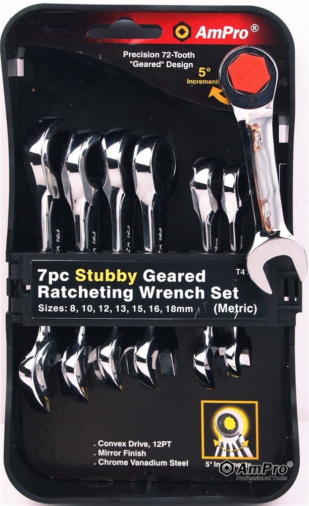 Description 7PC STUBBY GEARED RATCHETING WRENCH SET
