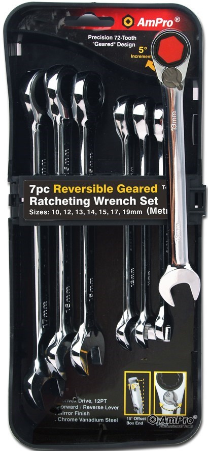 Description 7PC REVERSIBLE GEARED RATCHETING WRENCH SET