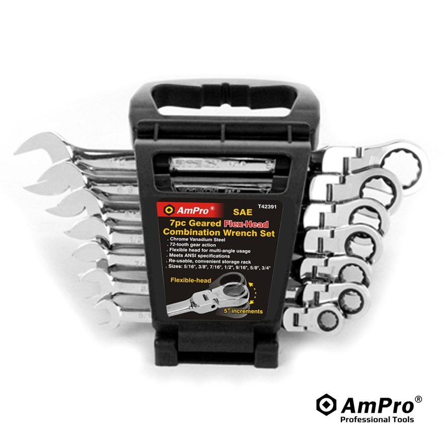 7PC FLEX-HEAD GEARED RATCHETING WRENCH SET (5/16" - 3/4")