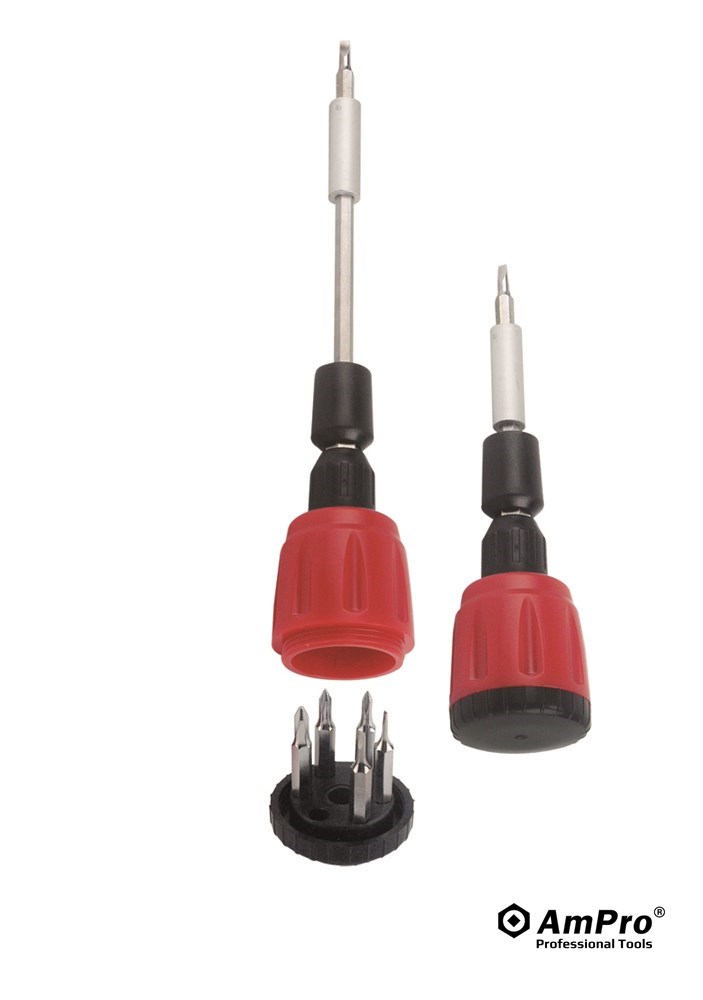Features ·6 BITS STORED IN HANDLE ·EXTENDS UP TO 2-3/4" ·DURABLE S2 ALLOY STEEL BITS: 3 - PHILLIPS #00, #0 AND #1 3 - SLOTTED 1.0, 1.5 AND 2.5MM ·FORWARD-REVERSE GEARLESS ACTION