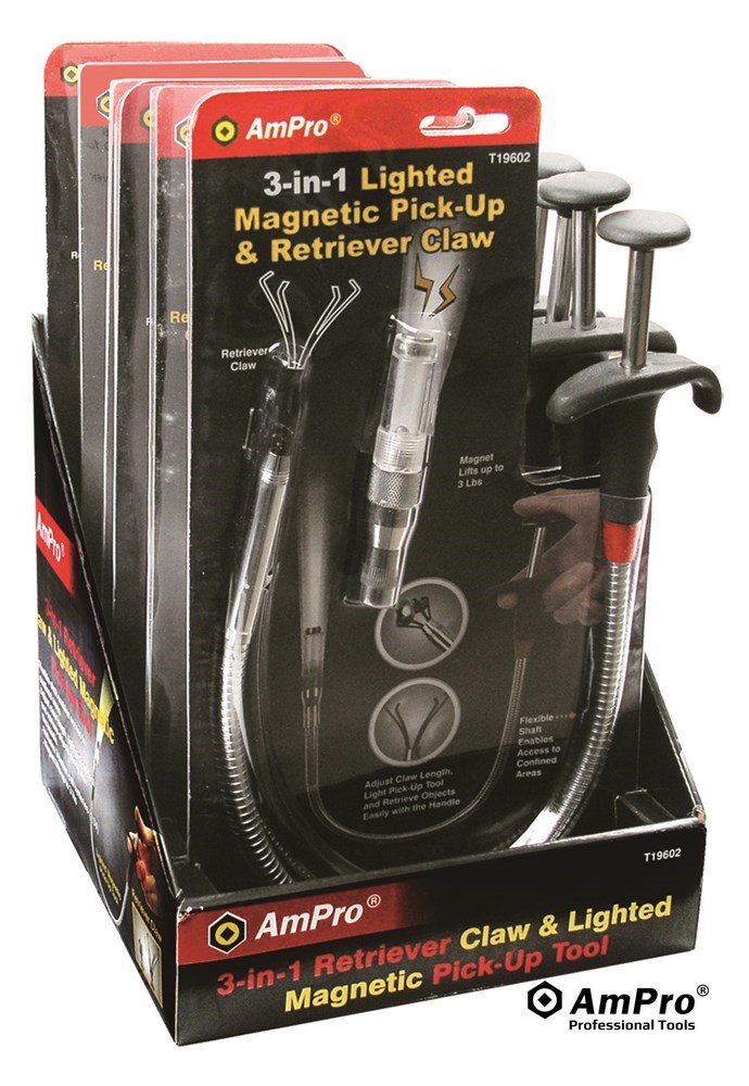 Description 3-IN-1 RETRIEVER CLAW & LIGHTED MAGNETIC PICKUP TOOL