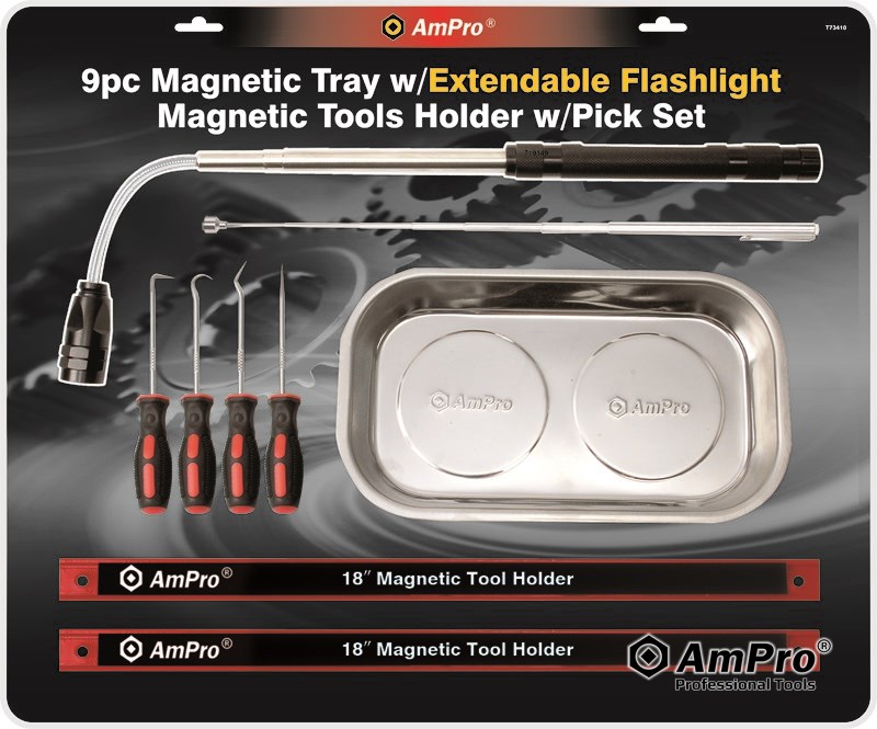 9PC MAGNETIC TRAY W/ EXTENDABLE FLASHLIGHT
