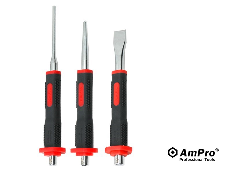 3PC CUSHIONED GRIP PUNCH AND CHISEL SET