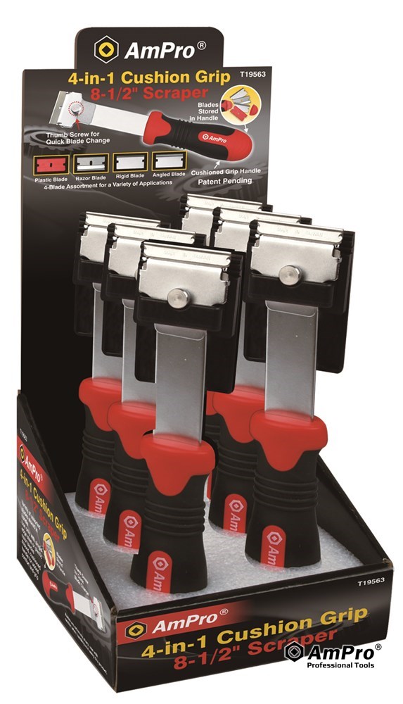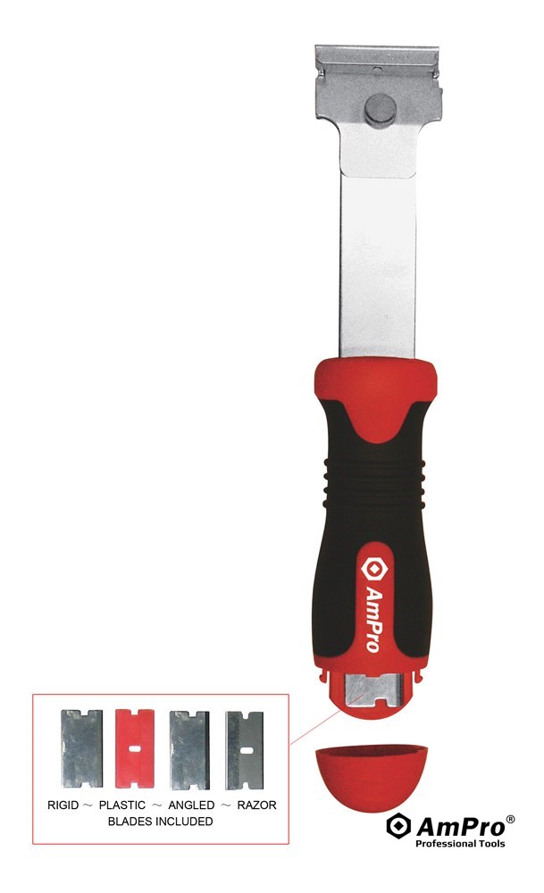 Features 8.5" IN LENGTH USES SINGLE EDGE BLADES TPR SOFT GRIP HANDLE