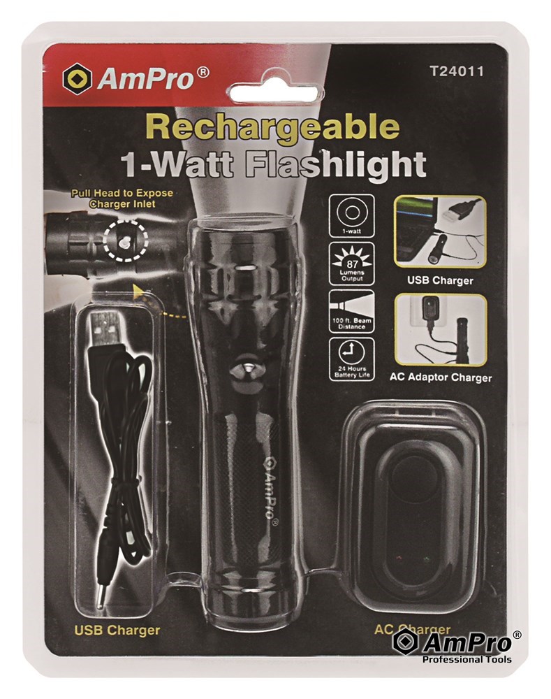 Features HIGH PERFORMANCE, ULTRA BRIGHT FLASHLIGHT COMPACT, LIGHTWEIGHT ALUMINUM ALLOY CONSTRUCTION LITHIUM-ION 2200MAH BATTERY CAPACITY OVER 15 HOURS OF CONTINUOUS USE HIGH INTENSITY, ULTRA BRIGHT 3-WATT 100,000-HOUR LIFE LED,120 LUMENS INCLUDES A COMBO AC AND USB CHARGER