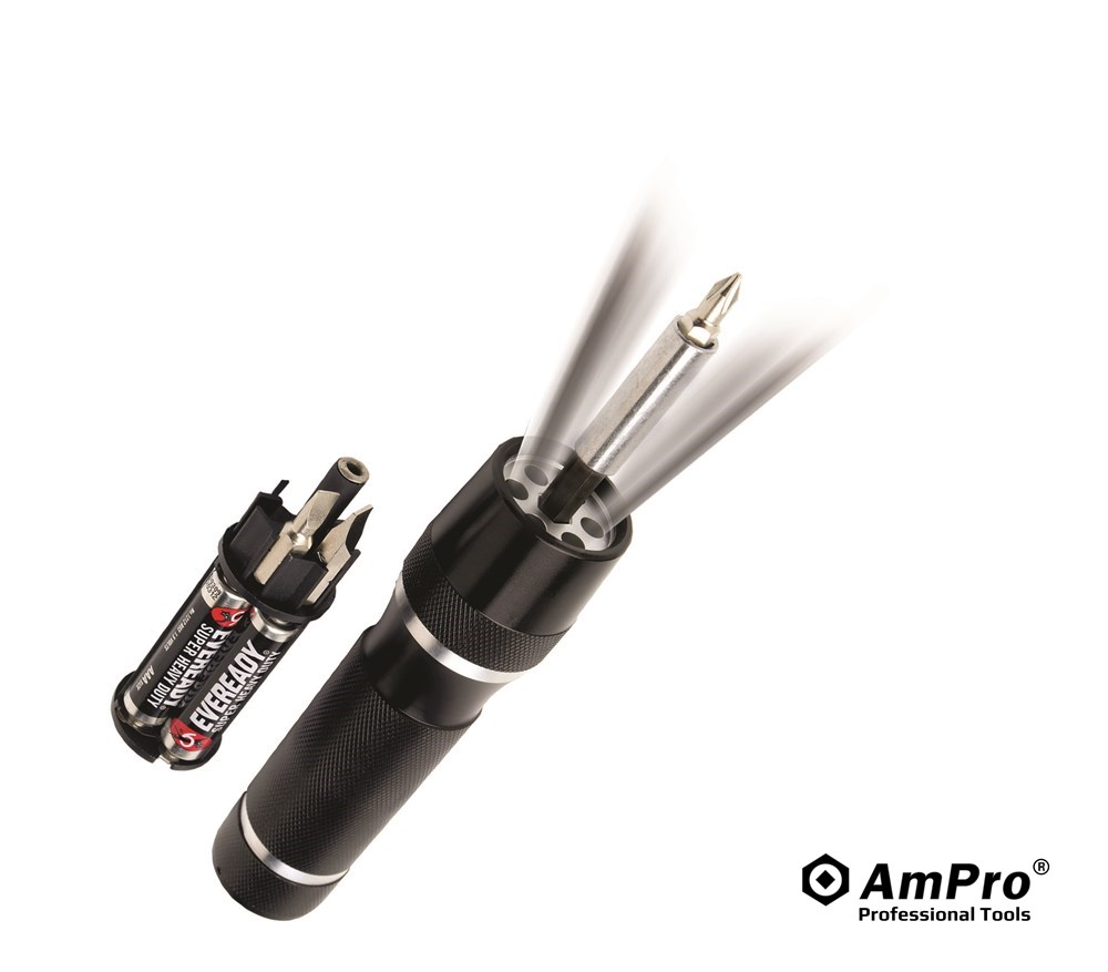 Features COMPACT, LIGHTWEIGHT ALUMINUM ALLOY CONSTRUCTION 100,000 HOUR LED LIFETIME 3 AAA BATTERIES & BITS STORAGE IN HANDLE