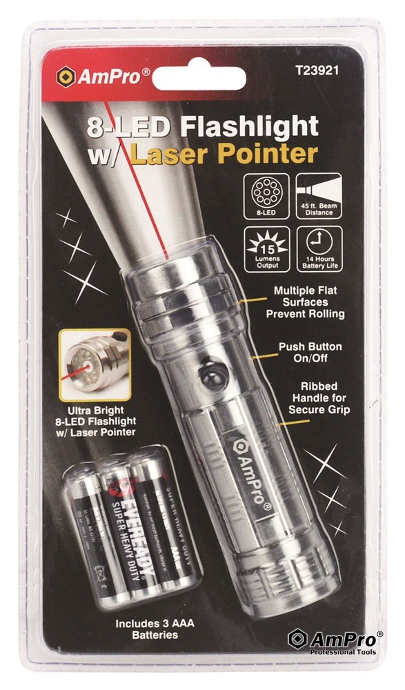 Description 8-LED FLASHLIGHT W/ LASER POINTER