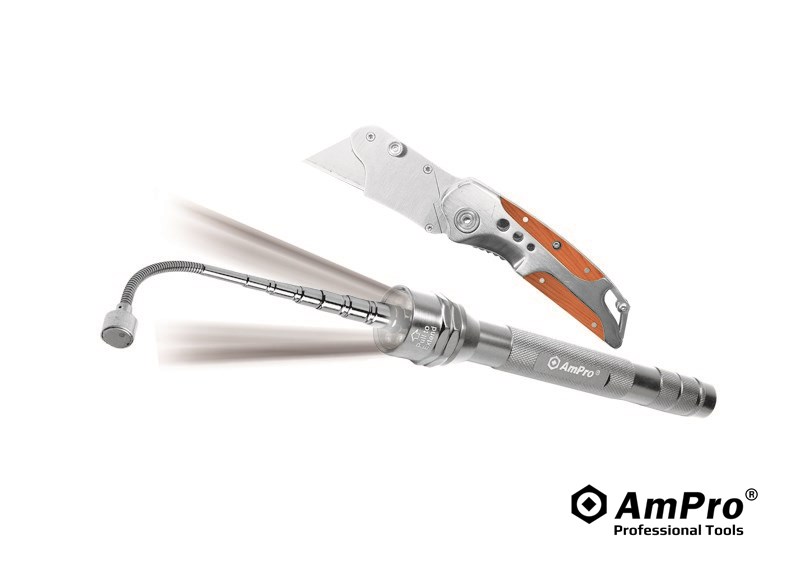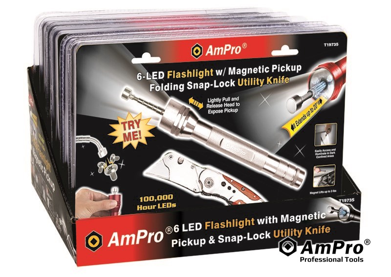 Description 6-LED FLASHLIGHT W/ MAGNETIC PICKUP & FOLDING SNAP-LOCK UTILITY KNIFE