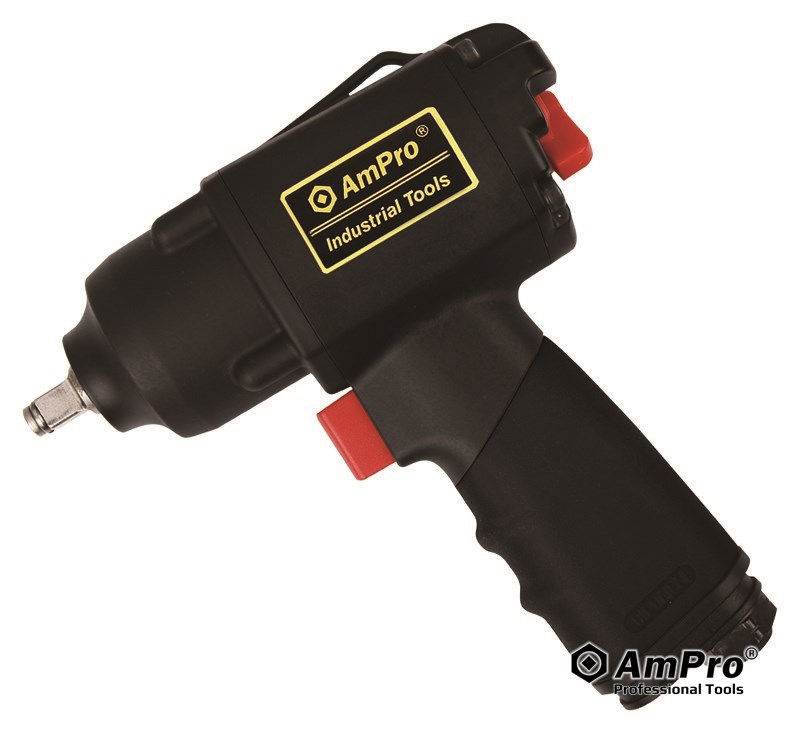 Features HEAVY DUTY FIBER COMPOSITE BODY FOR PERFORMANCE AND LONG LIFE LIGHTWEIGHT COMPACT DESIGN TWIN HAMMER MECHANISM FOR HIGH TORQUE PERFORMANCE BOTTOM EXHAUST DIRECTS AIR AWAY FROM WORK SURFACE BOLT CAPACITY....................... 1/2" (13MM) FREE SPEED............................10,000 RPM MAX. TORQUE............ 280 FT/LBS (380 N.M.) AVG. AIR CONSUMPTION .10.6 CFM (300 L/MIN) AIR PRESSURE.................................. 90 PSI AIR INLET...............................1/4" NPT (PT) HOSE SIZE......................................3/8" ID