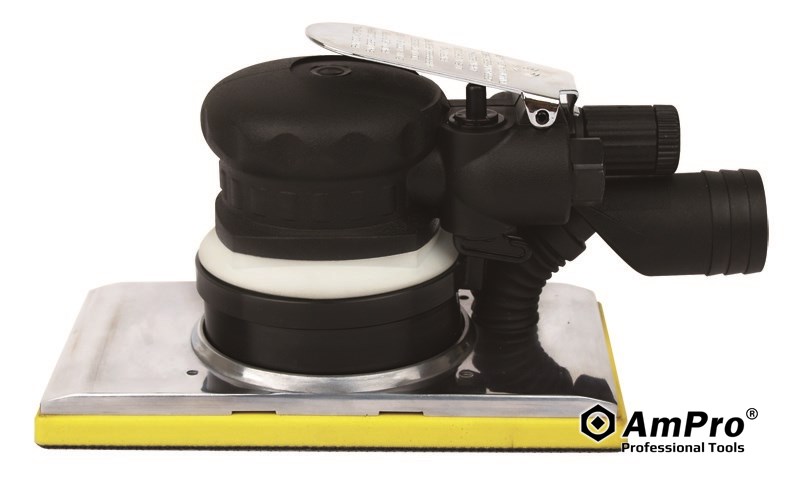 Features SMOOTH, RELIABLE AND POWERFUL LONG LASTING DURABILITY WITH LOW MAINTENANCE FOR ALL TYPES OF SURFACE PREPARATION AND RAPID REMOVAL OF MATERIAL FROM LARGE AREAS HIGH POWERED, CENTRAL VACUUM DESIGN ORBITAL STROKE...................... 1/8" (3.2MM) PAD SIZE............................100 X 180MM FREE SPEED..............................8,500 RPM AVG. AIR CONSUMPTION.1.65 CFM (47 L/MIN) AIR PRESSURE...................................90 PSI AIR INLET...............................1/4" NPT (PT) HOSE SIZE......................................3/8" ID
