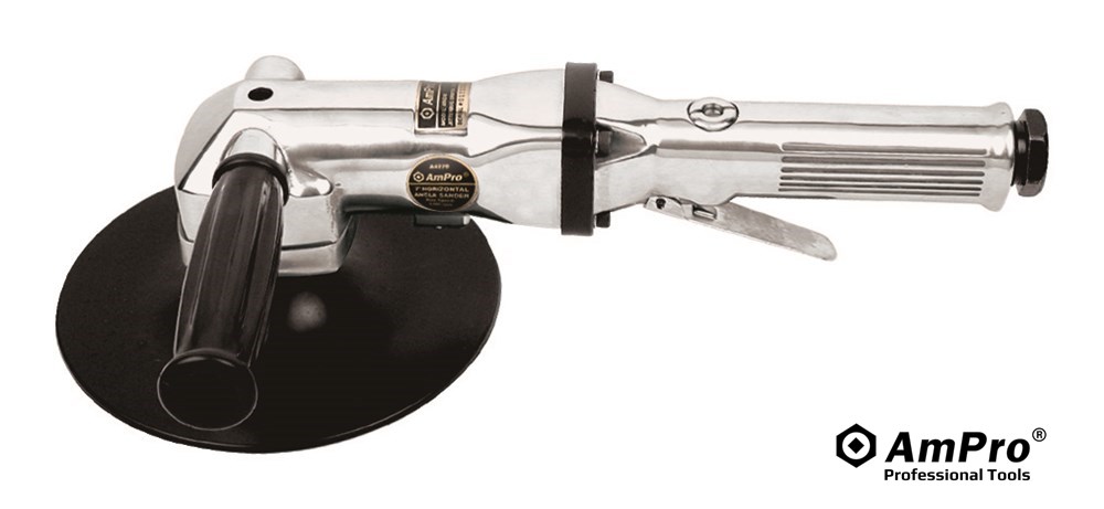 Features BUILT-IN AIR REGULATOR FOR POSITIVE SPEED ADJUSTMENT HARDENED AND GROUND SPIRAL BEVELLED GEARS FOR LOW VIRBRATION SIDE HAND MOUNTS ON EITHER SIDE LEVER THROTTLE FOR POSITIVE SPEED CONTROL EXCELLENT FOR HEAVY RUST REMOVAL, METAL SANDING AND SHAPING OF CONTOURED FILLER PATCHES PAD SIZE............................... 7" (175MM) SPINDLE / THREAD SIZE................. 5/8" - 11 FREE SPEED..............................4,500 RPM AVG. AIR CONSUMPTION.12.0 CFM (340 L/MIN) AIR PRESSURE...................................90 PSI AIR INLET...............................1/4" NPT (PT) HOSE SIZE......................................3/8" ID