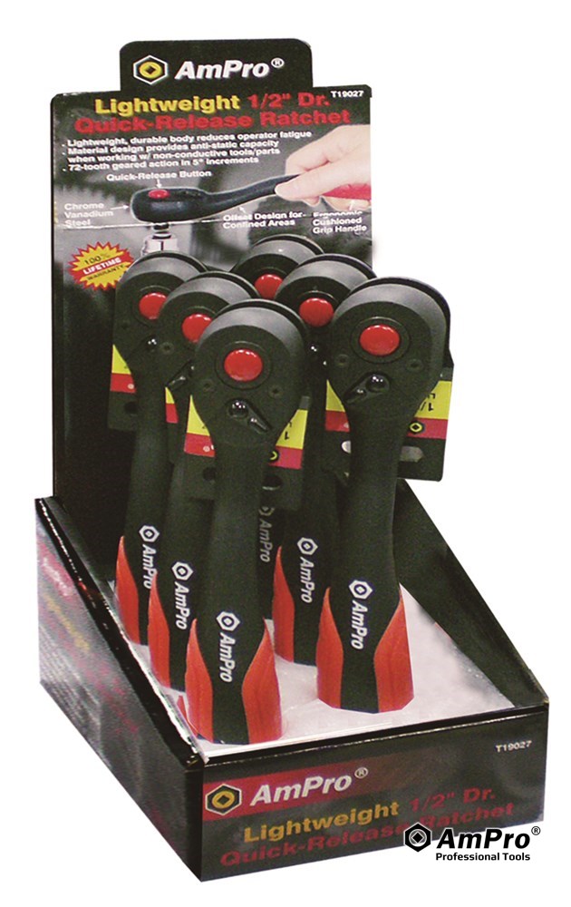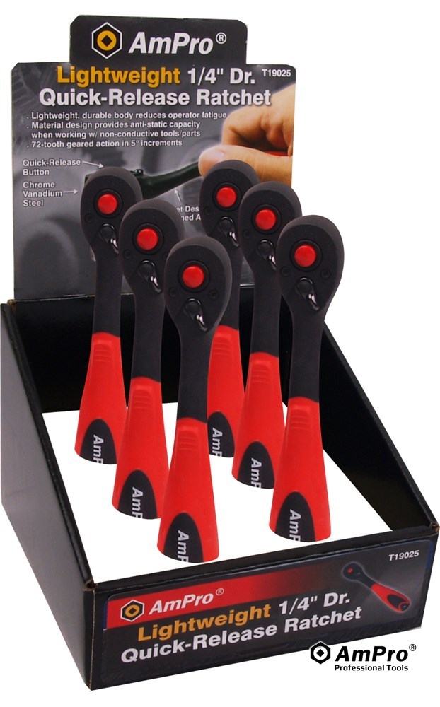 Features ·LIGHTWEIGHT, DURABLE BODY REDUCES OPERATOR FATIGUE ·CHROME VANADIUM STEEL ·MATERIAL DESIGN OFFERS ANTI-STATIC CAPACITY WHEN WORKING W/ NON-CONDUCTIVE TOOLS/PARTS ·72-TOOTH GEARED ACTION IN 5O INCREMENTS