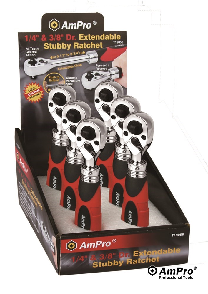Description 1/4" & 3/8" DUAL-DRIVE STUBBY EXTENDABLE RATCHET, 6-1/2" TO 8-3/4"
