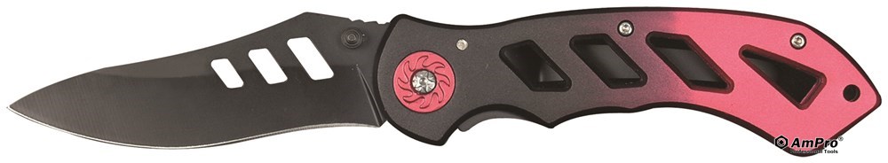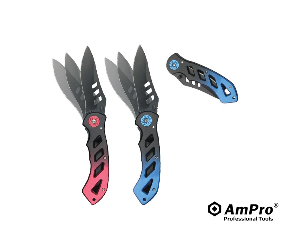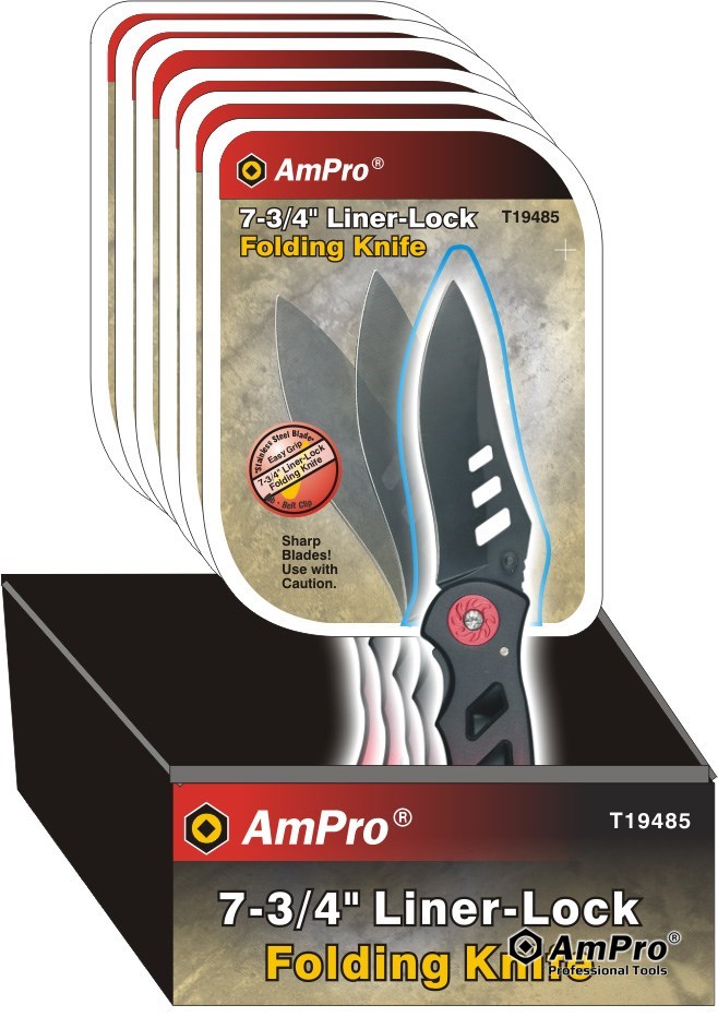 Features ·7-3/4” LINER-LOCK KNIFE ·THUMB KNOB FOR ONE-HAND OPENING ·HIGH QUALITY STAINLESS STEEL BLADE ·LIGHTWEIGHT BODY WITH ALUMINUM HANDLE ·INCLUDES BELT CLIP ON BACK ·ERGONOMIC HANDLE AND SAFETY LOCK