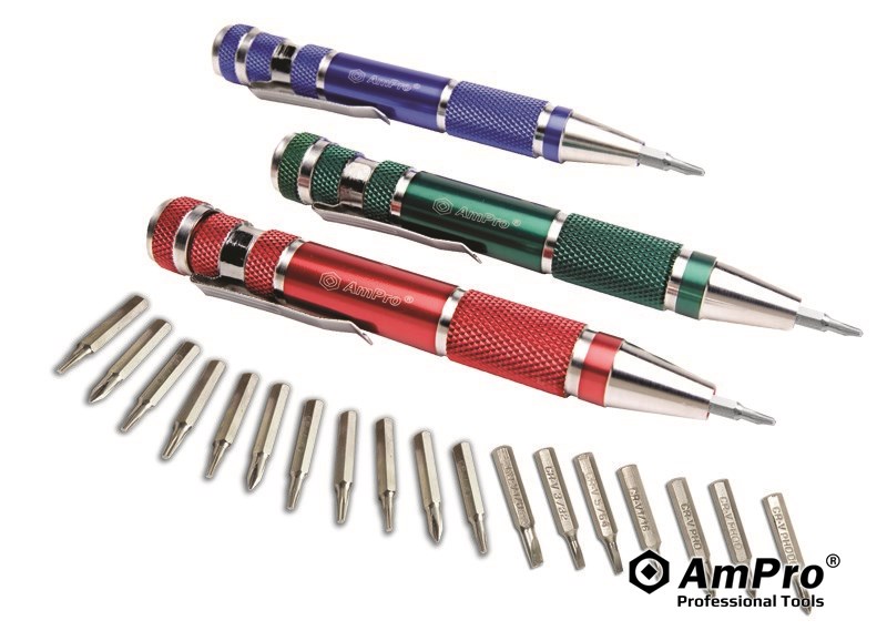 Features ·MINI SIZE WITH POCKET CLIP FOR EASY STORAGE & TRANSPORTATION ·MAGNETIC TIP IN HANDLE ·CHROME VANADIUM STEEL BITS STORED IN HANDLE